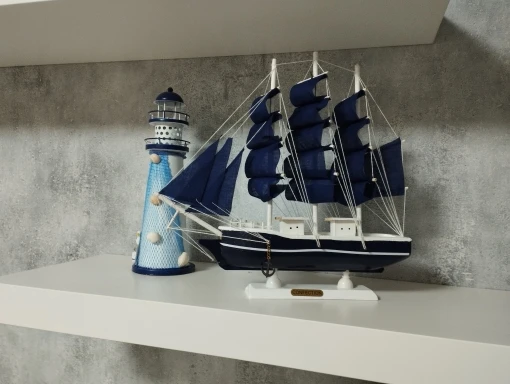 Barco Pirata Decorativo em Madeira Artesanal – Navio Náutico para Decoração de Casa e Escritório
